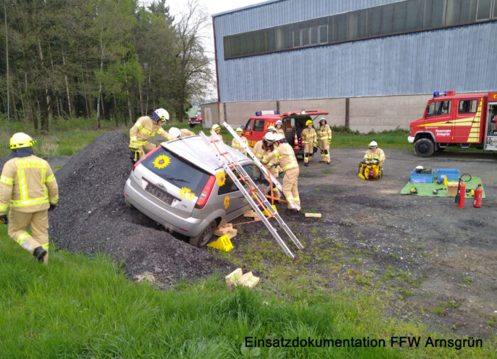 Die Jugendfeuerwehr Arnsgrün verfügt seit September 2025 über eigene „Pressluftatmer“-Attrappen. Damit kann der Nachwuchs realistisch für den Atemschutz-Einsatz trainieren.