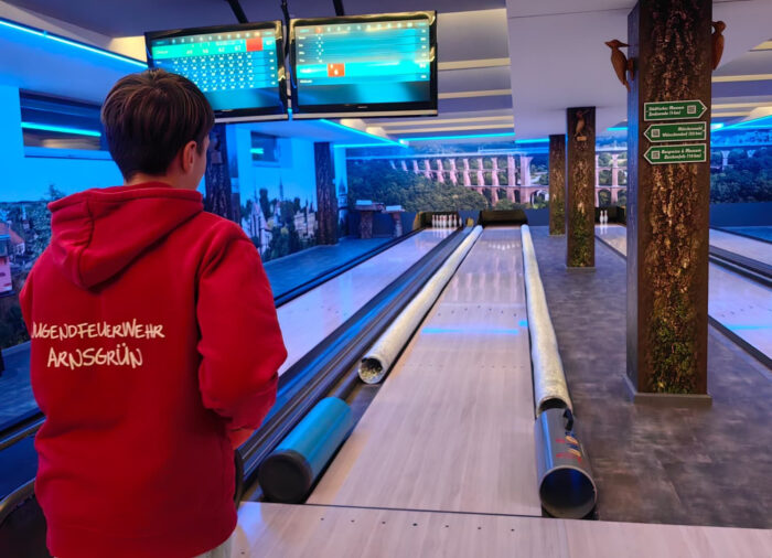 Dazu wurden die Bowlingbahnen im Fitnessbereich des Bio-Seehotels in Zeulenroda gebucht. Nach dem einstündigen Bowling und einem kleinen Abendessen folgte eine kurze Auswertung des Jahres 2025: Die aktivsten Jugendlichen erreichten mit jeweils 88 Dienststunden im Jahr deutlich mehr Teilnahme als die meisten Einsatzkräfte!