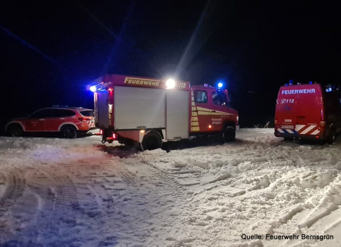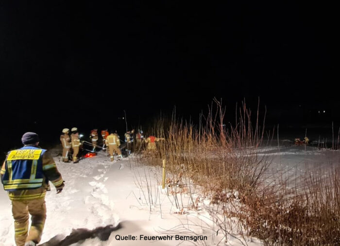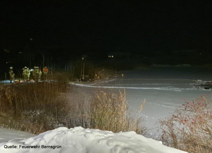 Die Feuerwehren Arnsgrün und Bernsgrün wurden zu einer im Eis eingebrochenen Person alarmiert. Es handelte sich um eine Einsatzübung. Dafür hatte sich ein Kamerad der Tauchergruppe der Feuerwehr Zeulenroda mit einem Hunde-Dummy im Eis platziert. Die Einsatzkräfte aus Arnsgrün unterstützten die Bernsgrüner Ortswehr beim Ausleuchten der Einsatzstelle und bei der Personenrettung. Im zweiten Durchgang der Einsatzübung wurde die FF Pöllwitz zum gleichen Szenario alarmiert.